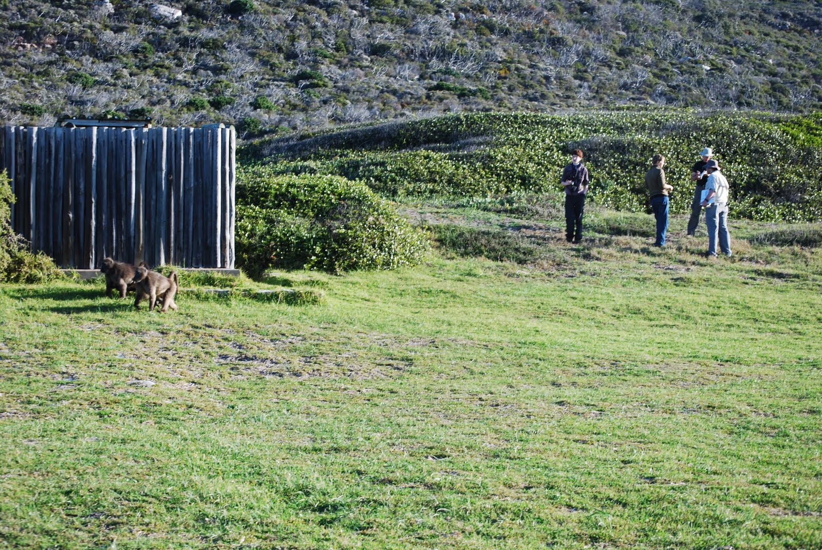 Today the team worked all day down on the cape again -- technically, this is part of Table Mt. National Park, and the team has a permit, but since they are working in two groups, we keep getting stopped by officials, without our permit, leading to lengthy discussions. Apparently, Carl told Colin, who was working on his knees in the brush, to "stay down," so that his appearance would not cause questions -- I missed this interchange.